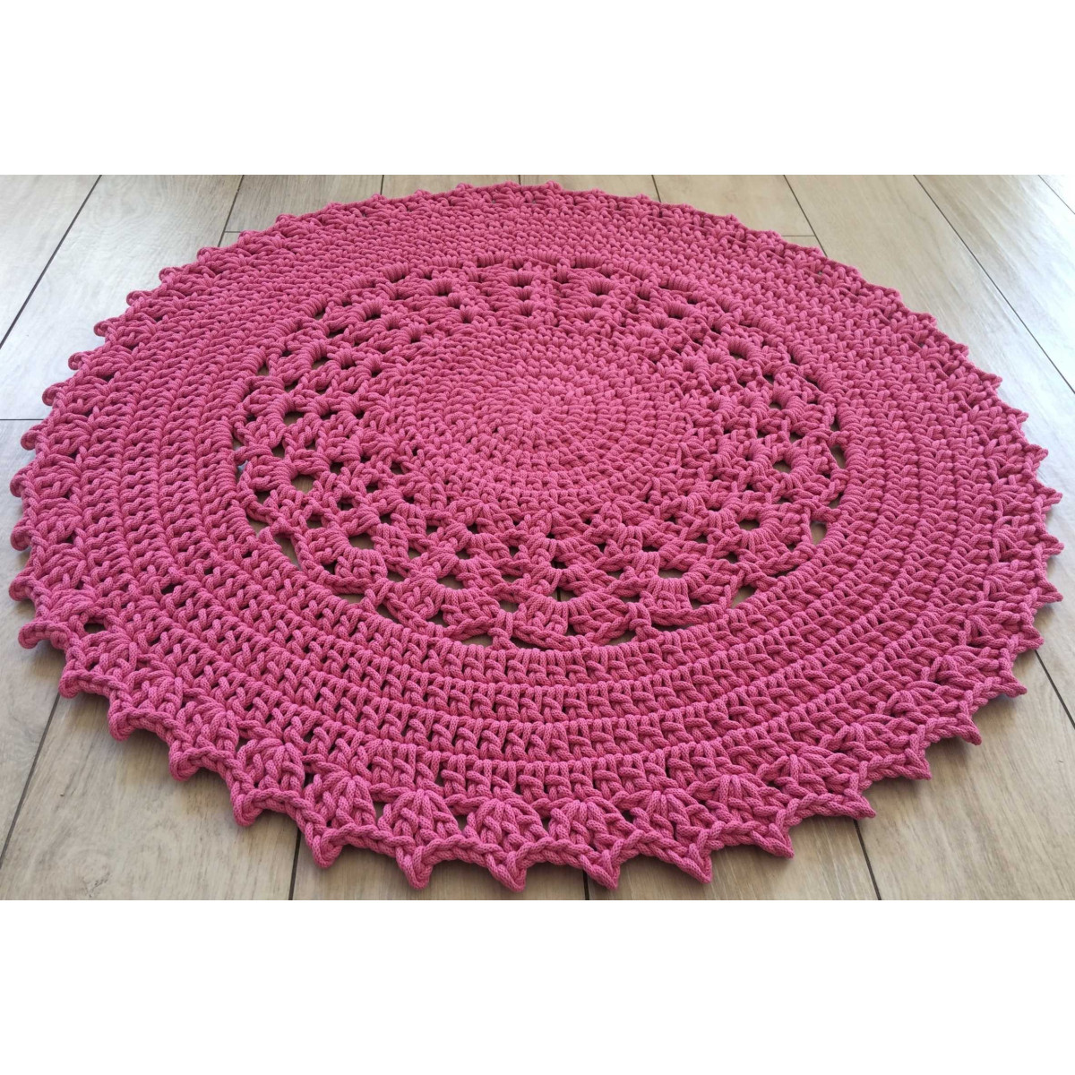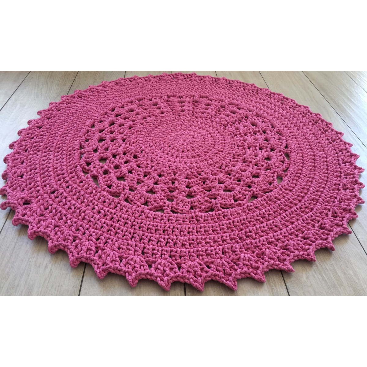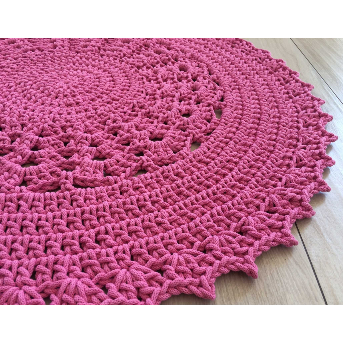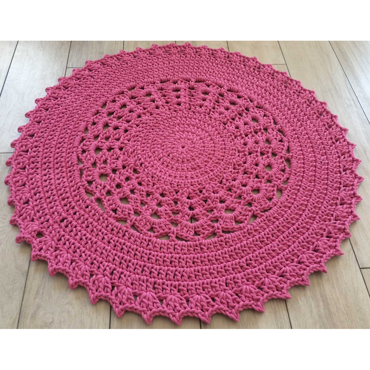 Dywan ze sznurka bawełnianego wydziergany ręcznie na szydełku.Jest gruby, mięsisty i miły w dotyku. ..
