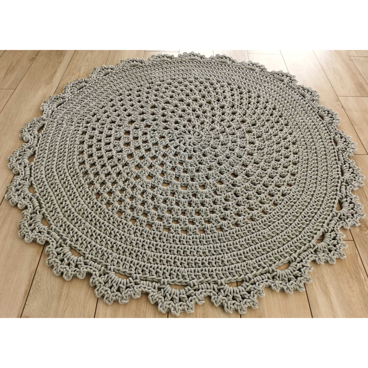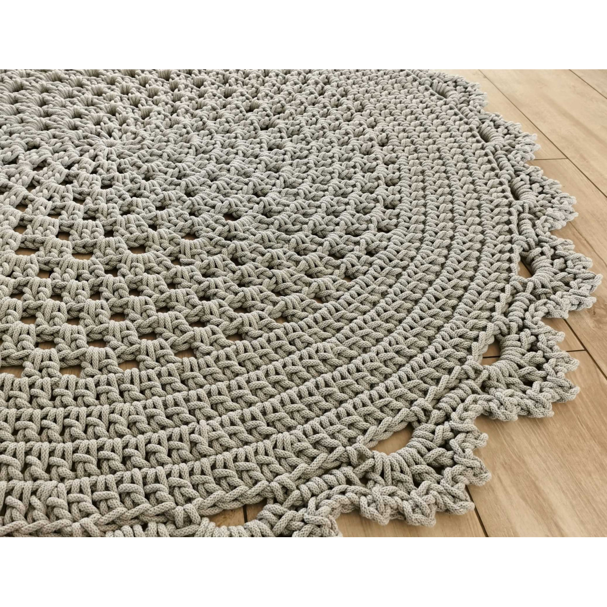 Dywan ze sznurka bawełnianego wydziergany ręcznie na szydełku.Jest gruby, mięsisty i miły w dotyku. ..
