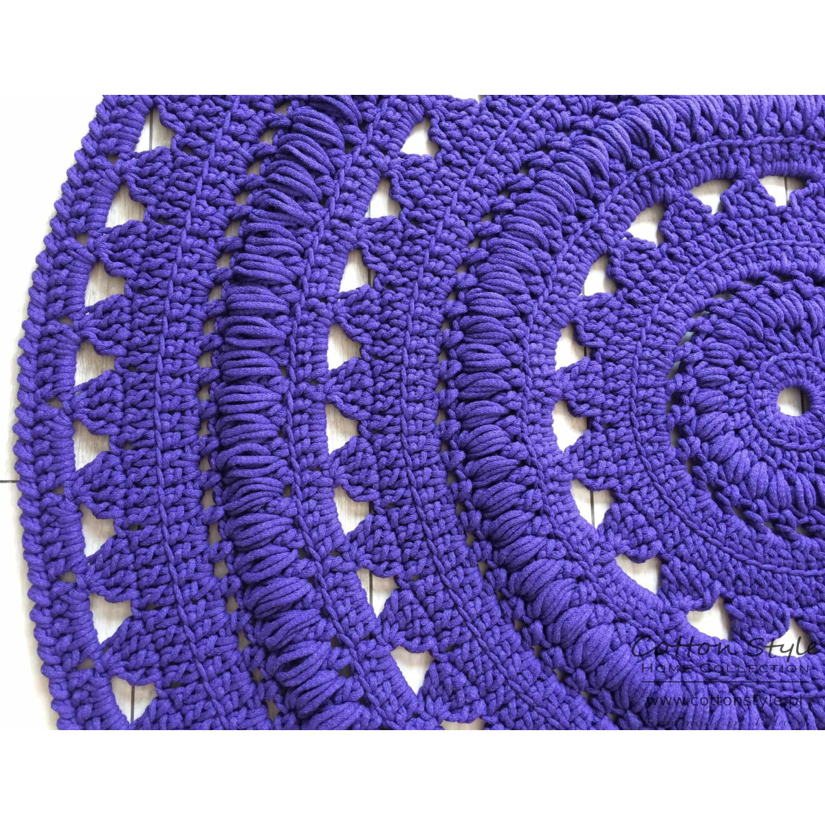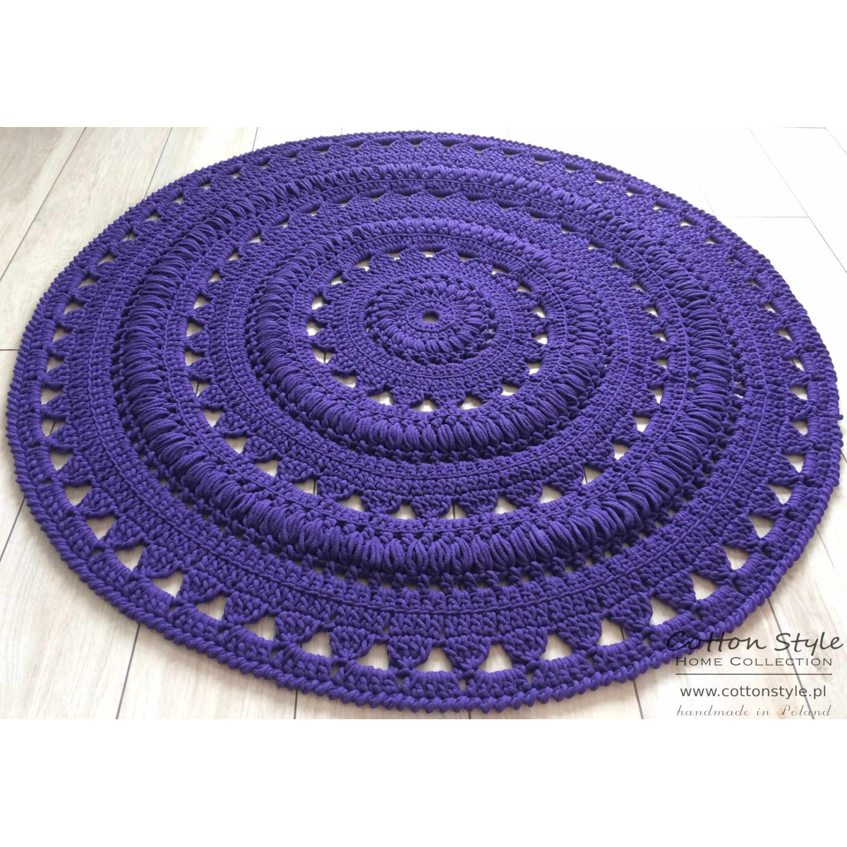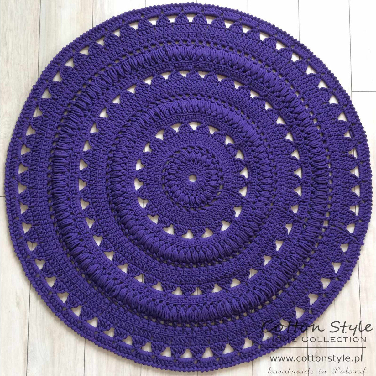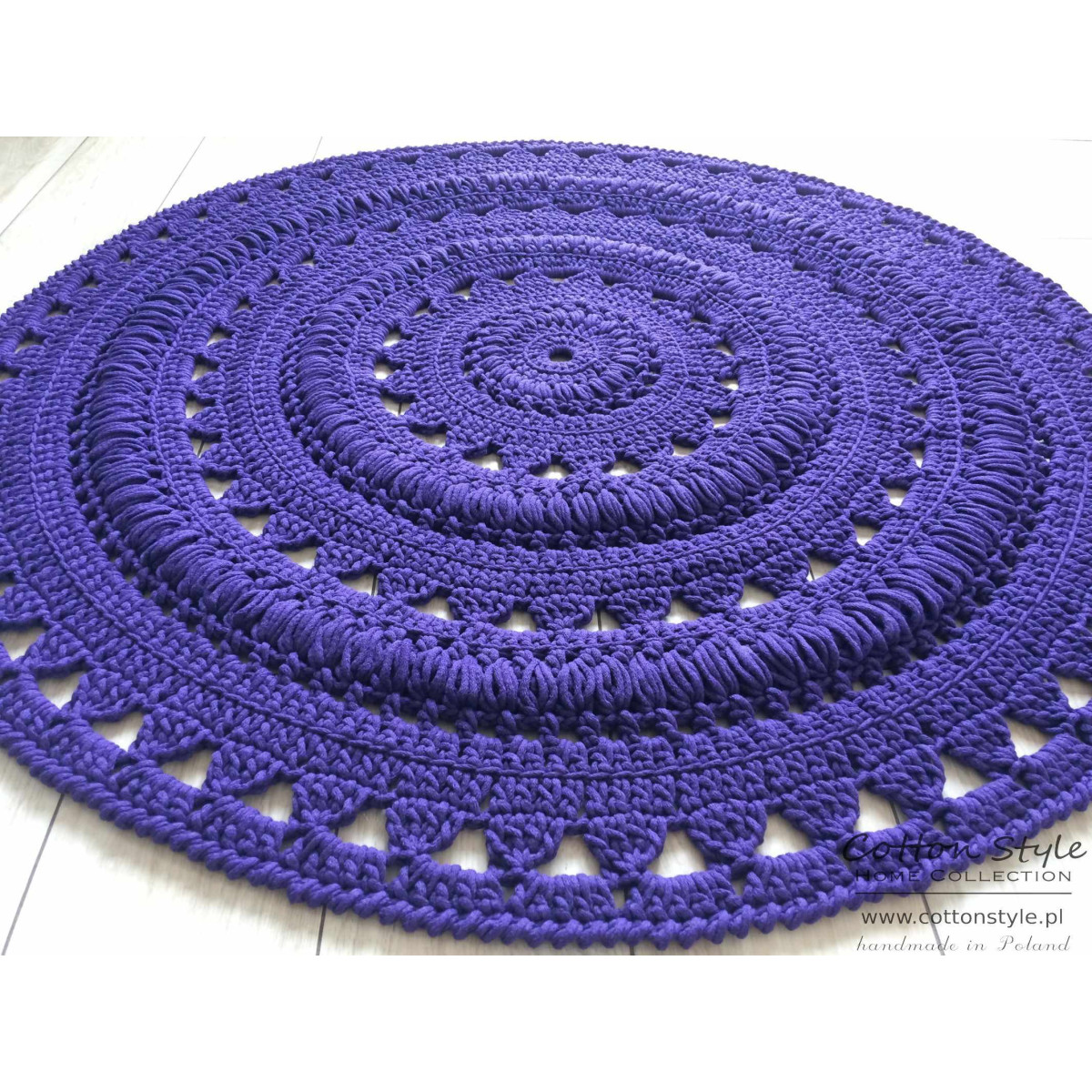 Dywan ze sznurka bawełnianego wydziergany ręcznie na szydełku.